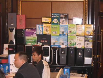 在會場上,最吸引人眼球的就是航嘉系列產品,特別是網吧專用機箱、電源,網吧業主對這次航嘉展出的節能管家電源特別關注。
