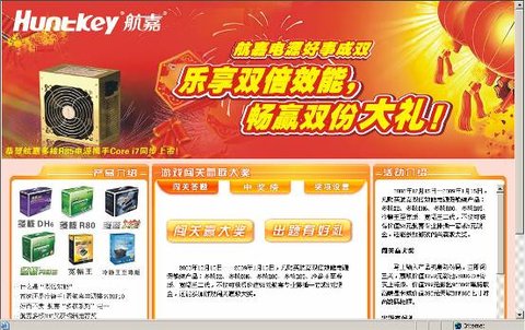 2008年12月15日——2009年1月15日,凡購買航嘉雙倍效能電源促銷裝產(chǎn)品:多核X2、多核DH6、多核R80、多核R85、冷靜王至尊版、寬幅王二代,就可享受雙倍效能,并有機(jī)會獲得雙份大禮!