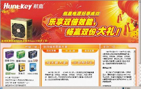 2008年12月15日——2009年1月15日,凡購買航嘉雙倍效能電源促銷裝產(chǎn)品:多核X2、多核DH6、多核R80、多核R85、冷靜王至尊版、寬幅王二代,就可享受雙倍效能,并有機會獲得雙份大禮!