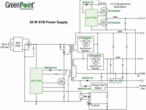 安森美推出用于機(jī)頂盒的50W交-直流GreenPoint™參考設(shè)計(jì)