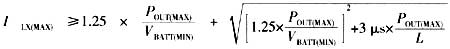 式中,POUT(MAX)為負載最大功率;VBATT(MIN)為最小電源電壓;POUT(MAX)為變換器最高輸出電壓。