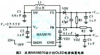 MAX8570是MAXIM公司推出的OLED升壓變壓器專用芯片。它不僅設計先進、功能完善、而且外圍電路簡單、使用非常靈活、是目前設計OLED電源偏置電路的一種理想器件。