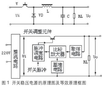 圖1畫出了開關穩壓電源的原理圖及等效原理框圖,它是由全波整流器,開關管Vi,激勵信號,續流二極管VD,儲能電感和濾波電容C組成。實際上,開關穩壓電源的核心部分是一個直流變壓器。這里我們對直流變換器和逆變器作如下解釋。逆變器,它是把直流轉變為交流的裝置。逆變器通常被廣泛地應用在采用電平或電池組成的備用電源中。直流變換器,它是把直流轉換成交流,然后又把交流轉換成直流的裝置。這種裝置被廣泛地應用在開關穩壓電源中。采用直流變換器可以把一種直流供電電壓變換成極性、數值各不同的多種直流供電電壓。