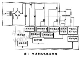 6)輔助電源,為控制電路、驅(qū)動(dòng)電路和顯示電路提供電源。電源整機(jī)電路方框圖如圖1所示。