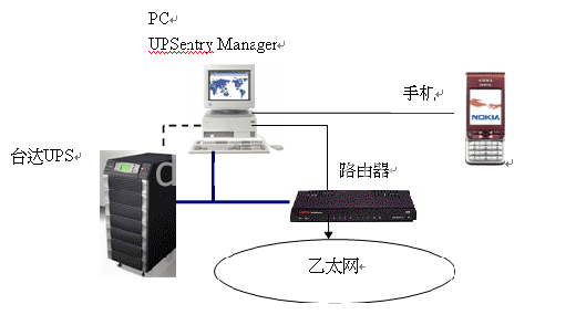 說明: UPS主機有SNMP卡插槽,全部車站采用SNMP卡與現有的網絡進行連接,分配固定的IP,即可通過監控中心或IE對UPS的工作狀態,工作信息實現遠程監控.
