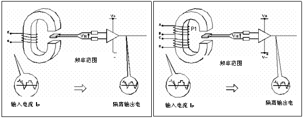 圖5. 帶有一個或兩個一次線圈的HX系列電流傳感器的工作原理。