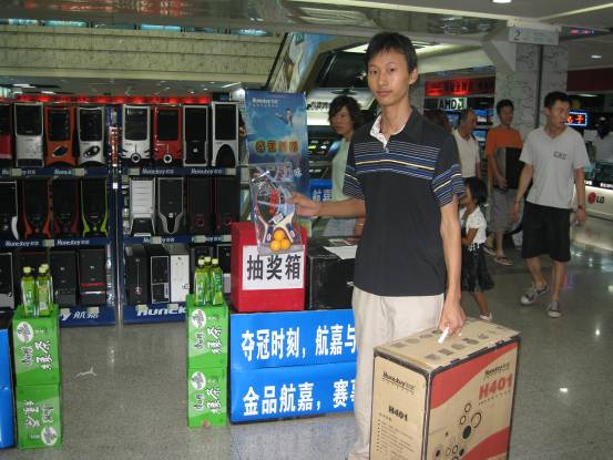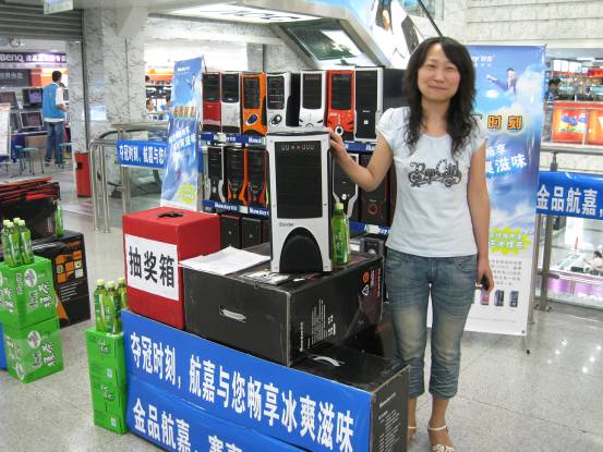 金秋八月,我們有舉國盛世2008奧運會,作為IT行業機電產業的領頭羊,航嘉也在本月為消費者帶來精彩不斷的促銷活動,讓利于大眾。今天航嘉在陜西最具人氣的賽格電腦城連續3天進行盛大的“金品航嘉,賽事金牌連環抽”的促銷活動,現場不但有航嘉精品機箱,而且還有豐盛的禮品助陣。只要購買航嘉機箱就有機會根據中國隊奪金數量抽中羽毛球拍、乒乓球拍等品牌體育用品,機會多多哦!
