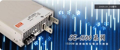 明緯新推出了1500W泛用型交流/直流單組輸出內置機殼式電源供應器(Enclosed type AC/DC single output power supply)~SE-1500系列~以滿足市場上低價格、高瓦數的應用需求。擁有7.8W/in3之高功率密度,最高達89%之機型工作效率,與內建長壽命風扇系統,SE-1500系列最高可滿載工作于50℃的環溫下并保持極佳的信賴度。本系列產品為無PFC之設計,故可維持較低成本,主要鎖定不需內建PFC功能的地區使用,如:美國、中南美洲、中國大陸、臺灣、東南亞、韓國、非洲…等。