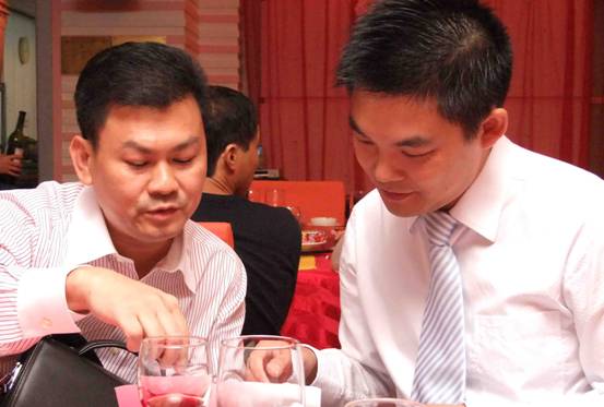 圖為飛捷公司楊總與財富集團總裁洽談融資事宜