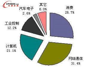 2009年上半年計算機類、消費類、網絡通信類三大領域仍然占中國電源管理芯片市場近80%的市場份額,其中網絡通信類市場最大,其市場份額都超過30%。從發展速度來看,往年發展速度最快的汽車電子類電源管理芯片市場也出現了8.6%的下滑,而網絡通信類電源管理芯片市場雖然也出現了一定的降幅,但由于中國3G市場的帶動,其市場僅出現3.8%的降幅,是所有電源管理芯片應用領域中降幅最小的領域。