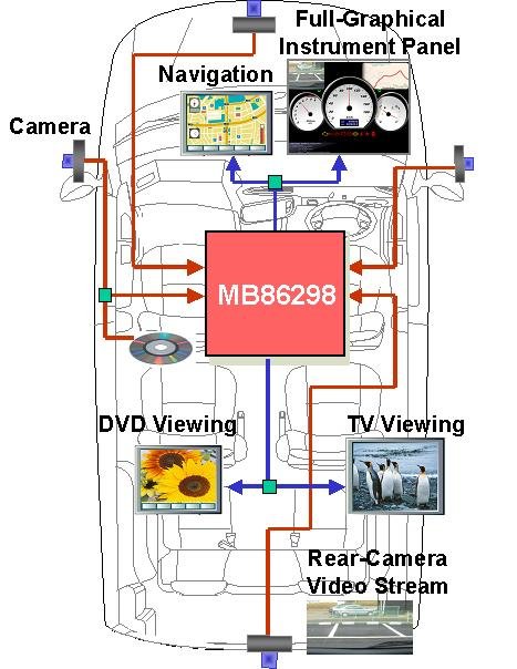 上海,2009年3月10日 - 富士通微電子(上海)有限公司今日宣布推出一款新型圖形控制器片上系統(tǒng)(SoC),用于汽車信息娛樂系統(tǒng),如:下一代汽車導航和數(shù)字儀表板。該款新型控制器 MB86298,不僅為嵌入式系統(tǒng)提供目前級別最高的圖形處理能力,還是業(yè)內(nèi)首款能夠把視頻輸出到4個顯示器并能處理4個視頻輸入的芯片。