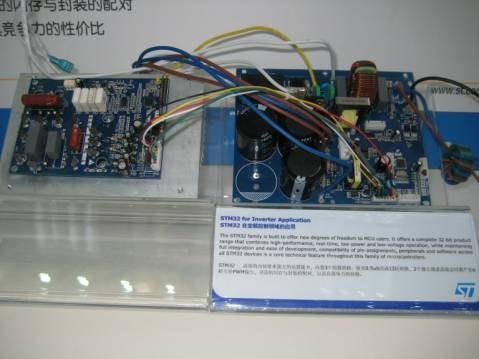在節(jié)能控制器展區(qū),最受關(guān)注的是基于STM32的變頻控制方案。近年來(lái),由于人們對(duì)節(jié)能環(huán)保意識(shí)的不斷提高,使用變頻控制技術(shù)的節(jié)能家電不斷涌現(xiàn)。瞄準(zhǔn)這一市場(chǎng),各大MCU廠商紛紛推出相關(guān)產(chǎn)品。ST在2007年推出基于Cortex-M3的STM32系列產(chǎn)品,去年又?jǐn)U展了STM32支持的電機(jī)矢量控制函數(shù)庫(kù),新增了支持單旁路無(wú)傳感器控制、內(nèi)部永磁(IPM)電機(jī)控制和永磁同步(PMSM)電機(jī)弱磁控制的算法。新增的控制函數(shù)功能被補(bǔ)充到STM32電機(jī)控制函數(shù)庫(kù)2.0版內(nèi),在新一代電器、工業(yè)驅(qū)動(dòng)器、電泵、HVAC系統(tǒng)、POS機(jī)和電動(dòng)汽機(jī)車等應(yīng)用領(lǐng)域。據(jù)悉,目前市場(chǎng)上大約已有40種電機(jī)控制應(yīng)用采用了STM32微控制器。