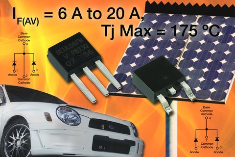 6CWT04FN、10WT10FN、20CWT10FN和20WT04FN具有達+175°C的最大結溫、超低正向壓降和低反向漏電流,確保設計人員可增加汽車、太陽能和其他高溫應用中的功率密度。四款器件均可提供I-Pak版本。