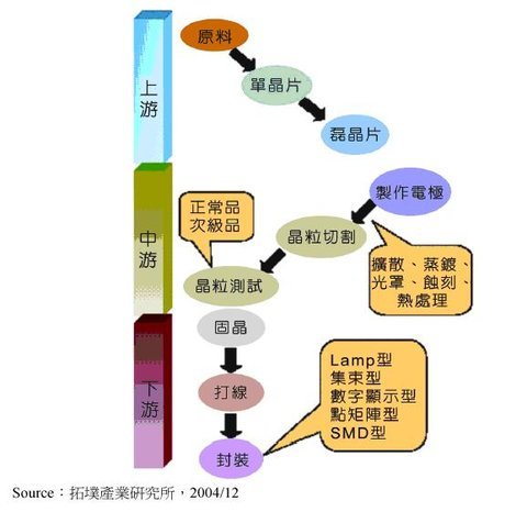 (一)上游:產品主要分為單芯片與磊芯片,單芯片系作為材料的基板。