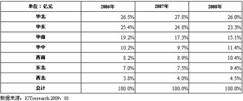 將中國IT市場劃分為華東、華北、華中、華南、西南、西北和東北7個區(qū)域,并針對不同的區(qū)域分別進(jìn)行相關(guān)調(diào)查、研究與分析。
