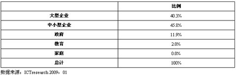 將中國IT應(yīng)用市場垂直劃分為:大型企業(yè)市場、中小型企業(yè)市場、政府市場、教育市場和家庭市場五種類型。其中前面兩種企業(yè)市場屬商用市場,又可平行劃分為銀行、保險、證券、電信、郵政、交通、電力、石油石化、煤炭與其它能源、物流、流通、制造、建筑、科研、媒體、衛(wèi)生等行業(yè)應(yīng)用市場(平行市場);后面三種(包括政府、教育、家庭市場)屬于非商用市場。