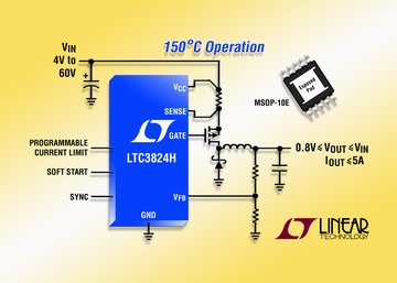 LTC3824H保證在-40℃至150℃的工作結溫范圍內運作。以1,000片為單位批量購買,每片價格為2.55美元。如需更多信息,請登錄www.linear.com.cn。