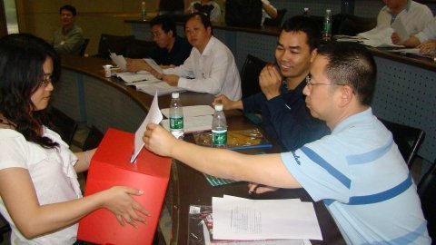 會員們鄭重地投下自己莊嚴(yán)的一票