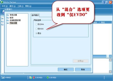 那么如何避免這個(gè)問題呢?其實(shí)很簡單,我們只需要點(diǎn)擊打開華為3G終端撥號軟件的界面,然后在點(diǎn)擊“工具”菜單,在選項(xiàng)一欄中找到“網(wǎng)絡(luò)設(shè)置”一項(xiàng),在這一項(xiàng)內(nèi)容中就可以允許用戶指定自己的網(wǎng)絡(luò)模式,設(shè)備在默認(rèn)情況下是在“混合”的位置,也就是允許2G和3G之間自動切換,此時(shí)我們只需要選擇“僅EVDO”一項(xiàng),即可將信號固定在3G網(wǎng)絡(luò)中,網(wǎng)絡(luò)就不會出現(xiàn)莫名其妙的減速了。■