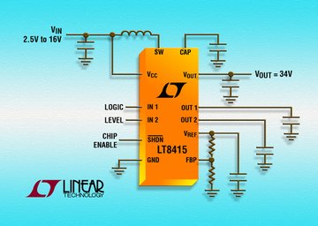 LT8415 在每個半橋中集成的 N 溝道和 P 溝道 MOSFET 由單個輸入引腳同步控制,而且從不在相同的時間接通,從而最大限度地提高了應(yīng)用的系統(tǒng)可靠性 (例如:MEM 繼電器)。內(nèi)部 MOSFET 按大小排列,以驅(qū)動從幾 pF 到幾 nF 的容性負(fù)載,而不會出現(xiàn)問題。LT8415 在單個芯片上集成主開關(guān)、半橋開關(guān)、肖特基二極管和輸出斷接功能,采用 2mm x 3mm DFN 封裝。LT8415 的 2.5V 至 16V 寬輸入電壓范圍使它能夠靠單節(jié)鋰離子電池以高達(dá) 12V 的固定輸入軌工作,從而提供高達(dá) 40V 的輸出。通過用外部電壓源驅(qū)動 FBP 引腳,可以動態(tài)調(diào)節(jié)輸出電壓。LT8415 可從單節(jié)鋰離子電池在 34V 輸出提供超過 700uA 的平均輸出電流,從而使其非常適用于 MEM 繼電器或偏置電源等應(yīng)用。兩款器件都采用獨特的控制技術(shù),而該方法在寬負(fù)載電流范圍內(nèi)提供高達(dá) 88% 的效率和低輸出紋波 (<10mVPK-PK)。其它特點包括集成的軟啟動和過壓保護(hù)。LT8415 的 2mm×3mm DFN 封裝結(jié)合纖巧、低成本的陶瓷電容器和電感器,提供了一個占板面積非常緊湊的解決方案。