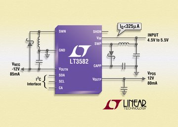 • 輸出電壓:3.2V 至 12.775V 和 -1.2V 至 -13.95V (LT3582)