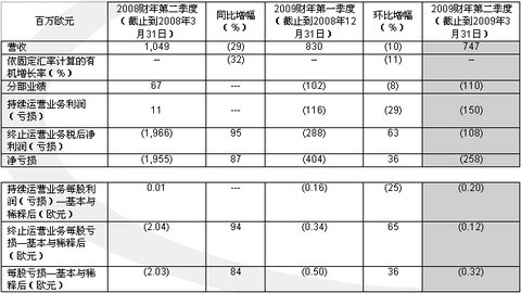 英飛凌2009財年第二季度的終止運營業務凈虧損為1.08億歐元,合每股虧損(基本與稀釋后)0.12歐元。2009年1月23日,奇夢達股份公司及其全資子公司奇夢達德累斯頓向慕尼黑地方法院提交了破產申請。在此基礎上,英飛凌于第二季度完成了對奇夢達的分立,并承擔主要與奇夢達貨幣換算效應相關的1億歐元累計虧損。此類累計虧損的確認將不會對英飛凌的股東權益產生任何影響。