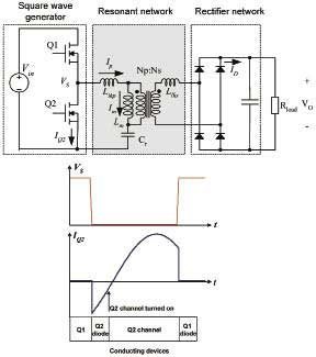 圖4 LLC諧振轉(zhuǎn)換器模塊示意圖和零電壓開(kāi)關(guān)波形