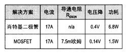 下表比較了在輸出功率為400W(24V,17A)、結(jié)溫為100℃時(shí),采用不同整流器獲得的結(jié)果: