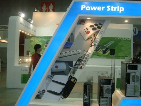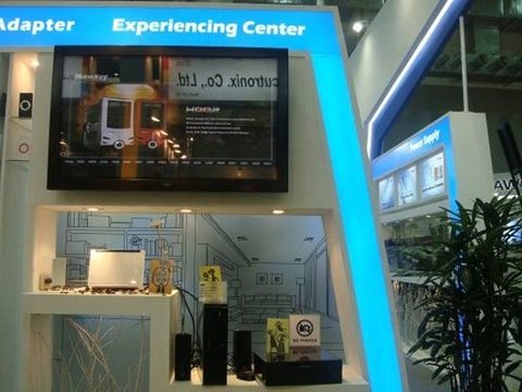 藍百搭配的航嘉展臺在Computex南館內(nèi)顯得格外養(yǎng)眼,穿越太空門航嘉帶您進入一個巔峰的科技世界。您將看到各類電源和機箱、厚度僅1.58厘米的超薄適配器、還有配帶USB等特殊功能的電源轉(zhuǎn)換器。