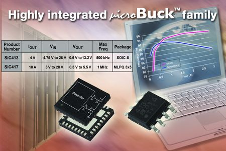 4A電流的SiC413和10A電流的SiC417 DC/DC轉換器具有兩個N溝道MOSFET、自舉二極管、控制器IC,