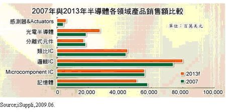 邏輯IC;預計由2007年的750億美元增長到2013年時的800億美元