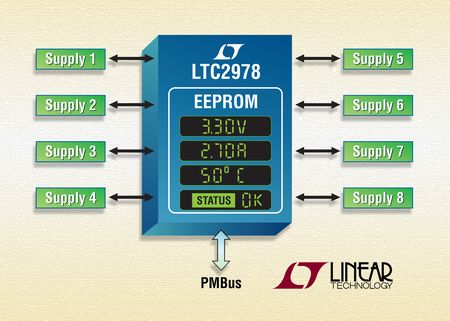 凌力爾特公司 (Linear Technology Corporation) 推出 LTC2978 電源監視器和控制器,用于多達 8 個 0V 至 6V 電源的數字化管理。當采用無源元件時,在一個本已很復雜的系統中配置多個 DC/DC 轉換器會是一項復雜的設計工作。由外部修整電阻器和電容器規定的參數值 (例如:啟動時間、設定值或開關頻率) 將使系統缺乏靈活性。為了幫助減輕這些問題,對模擬電源實施數字控制可實現輸出電壓的快速調節以及精準的保護、監視和診斷機理。LTC2978 符合 PMBus 標準的接口提供了板上 EEPROM 的簡易型存取,因而賦予了用戶進行電源配置、故障響應和記錄的能力。此外,諸多的監控、裕度調節和排序功能還使 LTC2978 成為一款使用方便的一體型數字電源管理解決方案,從而大幅度地簡化了設計難題,并使采用傳統模擬控制方案時常見的元件數目眾多現象得以緩解。