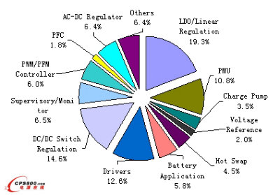 圖4 2009年上半年中電源管理芯片路市場產品結構