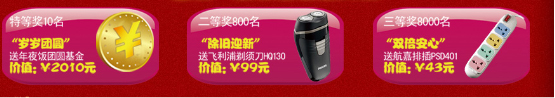 特等獎10名歲歲團圓:送年夜飯團圓基金價值:¥2010元