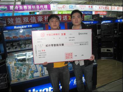 深圳首個特等獎昨天誕生了,航嘉送出了價值2010元的年夜團圓基金,獲獎者在購買了一臺航嘉R85電源后,驚嘉地中得了航嘉寒促的特等獎。