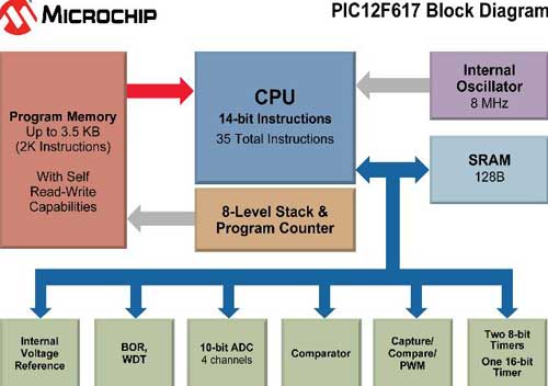 PIC12F617 MCU具備3.5 KB的可自編程閃存,并具備自讀寫(xiě)功能。這一特性使之成為數(shù)據(jù)EEPROM的低成本替代品,并且有益于應(yīng)用實(shí)現(xiàn)遠(yuǎn)程更新或存儲(chǔ)系統(tǒng)數(shù)據(jù)或查找表功能。該單片機(jī)具備一個(gè)8 MHz內(nèi)置振蕩器、一個(gè)片上4通道10位ADC、一個(gè)具備遲滯的比較器和一個(gè)有互補(bǔ)輸出的PWM,為諸如LED照明控制、電機(jī)控制、容性觸摸按鍵和系統(tǒng)監(jiān)控等應(yīng)用提供了一個(gè)框架。隨著這一全新產(chǎn)品的推出,Microchip還宣布對(duì)PIC16F61X系列其他產(chǎn)品進(jìn)行降價(jià),包括PIC12F609、PIC12F615、PIC16F610、PIC16F616 MCU及其相應(yīng)的高壓型號(hào)。