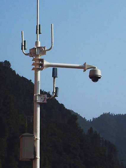 實際上,目前利用風能、太陽能為安防監控設備提供電源的工程已經在廣東、福建、江蘇、甘肅等省區得到諸多應用。行駛在一些地區的高速公路上,細心的人們可能會發現,高速路上的監控攝像機顯得有點不同以往。一些攝像機的立桿上多了一個轉動的風車和兩塊太陽能板,攝像機探頭高高懸掛在立桿上,在探頭上方的立桿頂部轉動著風車,在立桿的中下部安置了兩塊太陽能板。這就是一些安防監控工程最新采用的“風光互補供電路面監控系統”,該系統利用風能和光能(太陽能)互補發電支持攝像機運轉,不需要鋪設電纜線。
