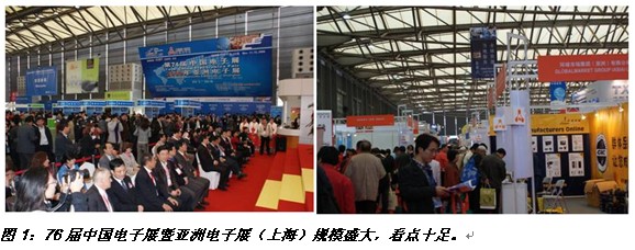 中國電子展CEF、日本電子高新科技聯展CEATEC JAPAN、韓國電子展KES、臺灣電子展Taitronics、香港電子展Hong Kong Electronics Fair這五家亞洲頂級專業電子展主辦單位在上海聯袂奉獻精彩紛呈的亞洲電子展,全面展示亞洲地區最新的消費類電子研發和制造趨勢(家庭娛樂、汽車電子產品、個人電腦與個人信息產品、網絡計算產品),以及商業與工業用途電子解決方案(電子儀器、元器件、通信設備)。