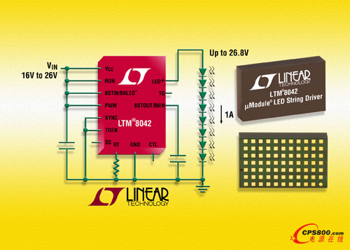 日前,凌力爾特公司 (Linear Technology Corporation) 推出 DC/DC 微型模塊 (uModule®) LED 驅(qū)動(dòng)器 LTM8042 和 LTM8042-1,這兩款器件面向由多達(dá) 8 個(gè)白光 LED 或 9 個(gè)紅光 LED 組成的 LED 串。每款器件都能在 3V 至 30V 的輸入電壓范圍內(nèi)以升壓、降壓或降壓-升壓模式工作,采用9mm x 15mm x 2.8mm LGA(盤網(wǎng)格陣列) 封裝,是完整的 LED 驅(qū)動(dòng)器解決方案。LTM8042 和 LTM8042-1 擁有 0.5% 的輸出電流電壓調(diào)節(jié)準(zhǔn)確度,并能承受高達(dá) 40V 的輸入瞬態(tài)電壓。LTM8042 提供高達(dá) 1A 的電流,而 LTM8042-1 提供高達(dá)350mA。每款器件都具有真正色彩 PWM (True Color PWMTM) 調(diào)光,調(diào)光比為 3000:1 ,或具 10:1 的模擬調(diào)光。這些器件緊湊、堅(jiān)固和完整的解決方案允許在工業(yè)照明、背光照明顯示器、掃描儀、汽車以及航空電子設(shè)備照明等應(yīng)用中實(shí)現(xiàn) LED 串驅(qū)動(dòng)器電路的快速設(shè)計(jì)至制造過(guò)程。