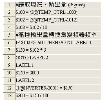 在一般的傳統(tǒng)控制系統(tǒng)中,因馬達(dá)送風(fēng)為定頻出力,會造成環(huán)溫已到達(dá)設(shè)定溫時,仍輸出過多冷房能力,造成環(huán)溫太低以致人員的舒適度不佳,也造成能源的浪費(fèi)。配合臺達(dá)HMI 及溫控器的使用,即可提供一個方便的使用接口來精確設(shè)定所要的室溫(達(dá)小數(shù)下一位),并且藉由溫控器PID 運(yùn)算功能,適度開啟閥門的開度及調(diào)節(jié)送風(fēng)量達(dá)到恒溫的要求,也可以減少冰水消耗以節(jié)省冰水機(jī)的電力耗能。因此藉由小額的工程及材料費(fèi)用即可達(dá)到舒適環(huán)境及每日節(jié)能的效果。