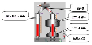 工作量器結構如圖1所示。工作量器分別為:10 L、20 L、100 L、300 L四種規格,可分別檢定相應標準容積的流量儀表。