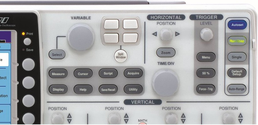 獨特的分割畫面功能能讓GDS- 3000系列以最多同時測試四個輸入信道的信號并且每個信號都能獨立的調整運作于顯示器上。在分割畫面模式下每一個窗口都提供獨立的水平掃描時基,垂直靈敏度以及觸發選項,并可以分別的顯示輸入信號于窗口畫面上,就相當于四臺獨立的示波器*,此功能非常適用于多點同步測試或當需要看到每個信號細節及特點的應用。 8英寸800 * 600 LED背光大尺寸高分辨率顯示器,提供分割畫面模式下一個舒適的觀測環境來查看細節復雜的信號。