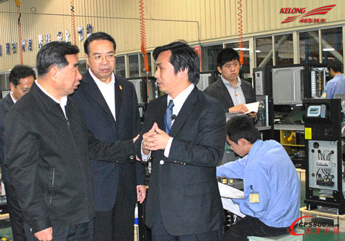 國務院副總理回良玉視察科華恒盛生產車間與陳成輝總裁親切交談鼓勵加強自主創新
