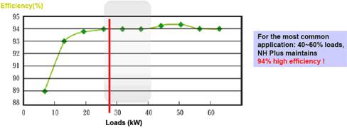 通常帶載越少,UPS效率越差。而HIFT(海福)UPS,即使帶載只有額定容量的15%,整機(jī)效率亦超過(guò)90%;當(dāng)帶載達(dá)到27%時(shí),效率就已高達(dá)94%。效率在百分比上的每一小步提升,能耗支出的節(jié)省都是一大步。