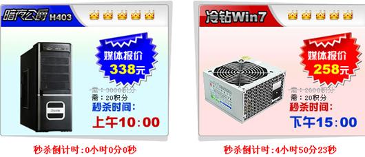 航嘉3.15系列活動之一:限時秒殺,機箱電源天天免費送已于今天開始。3月10日——4月10日,登錄航嘉積分樂園頁面,便可參加秒殺活動,活動期間每天都會有一臺價值338元的暗夜公爵機箱和一臺價值258元的冷靜王鉆石WIN7版電源免費送出。10日上午,重慶市九龍坡的楊先生已經(jīng)幸運的秒殺到了一臺暗夜公爵H403機箱。