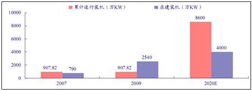 光伏發電是太陽能的主要利用形式。在預期出臺的《新能源發展振興規劃》中,我國規劃光伏發電裝機規模將大幅提高。市場預計至2020年國內光伏發電裝機容量將達到2000萬千瓦。同時,隨著世界經濟的復蘇和各國在可再生能源領域的投入增加,海外光伏發電市場有望再度啟動,其中美國是海外最具潛力和爆發力的市場。