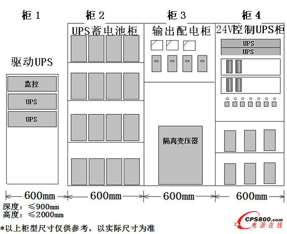 控制UPS 主機(含模塊) + 電池組(含電池柜)臺 + 配電等,共一面柜。