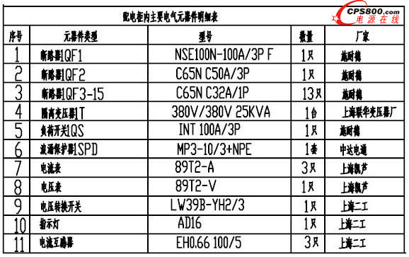 柜內主要元器件采用施耐德品牌。塑殼斷路器采用施耐德Compact NSE斷路器,微型斷路器采用施耐德C65N斷路器。內含中達隔離變壓器。站臺配電系統都預留了一路以上空開,作為備用。