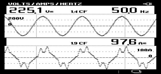 A/基于上面的分析,結合我們測量的負載設備的電流波形及曲線,我們為客戶選用的UPS容量為400KVA 。