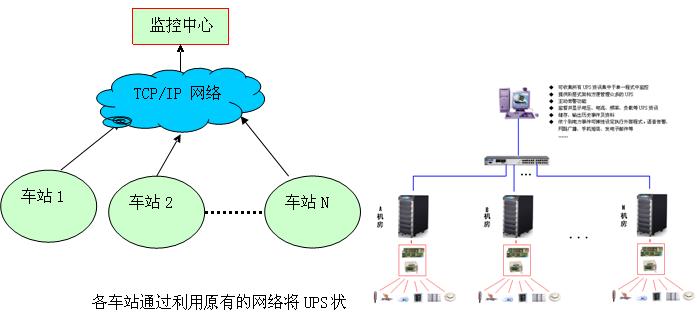 目標﹕將XX鐵路XX站設立監控中心,實現集中監控,使能把所有車站的臺達UPS的運行狀況,運行數據,達到反饋信息,處理問題的功效,特別需要解決電池放電狀態和旁路運行狀態的監控管理問題,能將重要信息發到主要負責人的手機上,以便能隨時掌握信息,對一些天氣災害停電而有應急預案.